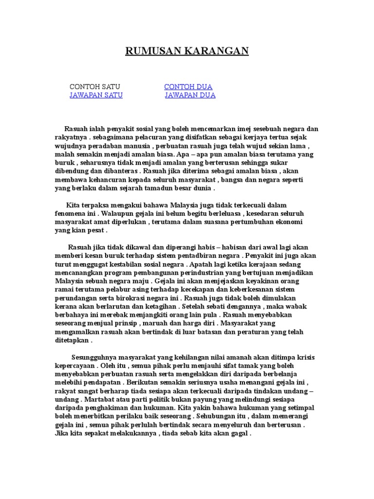 Karangan Ilmiah Tentang Makanan Kaleng. RUMUSAN KARANGAN CONTOH SATU CONTOH DUA JAWAPAN SATU JAWAPAN DUA Rasuah ialah penyakit sosial yang boleh mencemarkan imej sesebuah negara dan rakyatnya. Contoh Rangka Rumusan SPM Cikgu Bahasa.